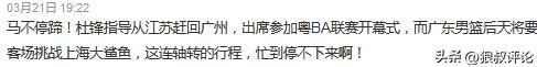 但“粵BA”的開幕式,剛剛打完江蘇客場的杜鋒,并沒有跟隊前往上海,而是返回廣東引發(fā)不少球迷的熱議。認(rèn)為他身兼多職,是否真能完全兼顧下來引發(fā)爭議。