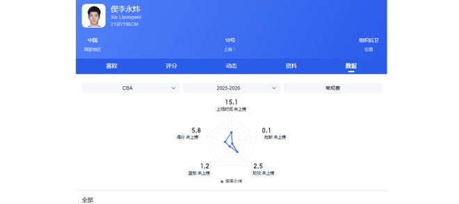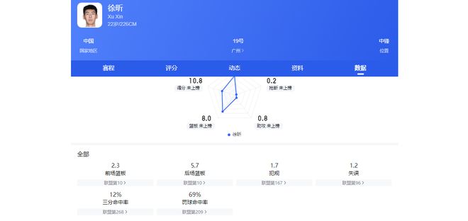 截至第29輪,徐昕場均可得10.8分,搶下8個籃板,完成2次封蓋。其中場均籃板高居本土第二位,場均封蓋高居本土第一位,該數(shù)據(jù)表現(xiàn)完全不輸很多拿頂薪合同的中鋒。