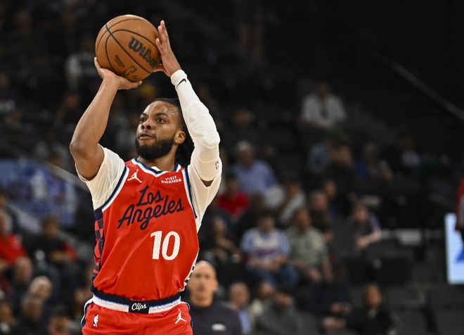 特別是加蘭這個點的融入,完全盤活了快船。從目前來看,他和倫納德非常適配。因為加蘭是可以拉開空間的,而且他的串聯不錯,視野好,也不粘球,這可以極大程度緩解倫納德在球場上的壓力。甚至加蘭的外線防守出眾,這樣的攻守表現提升了首發(fā)的容錯率。